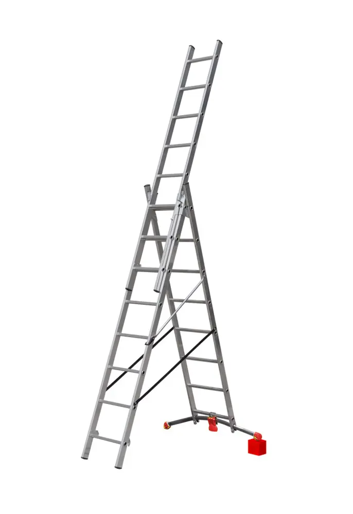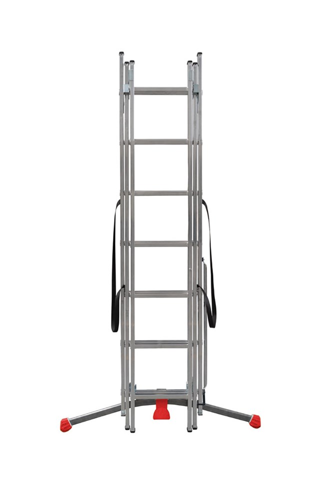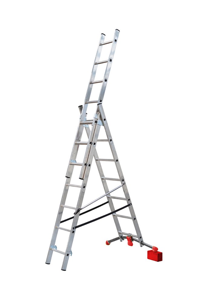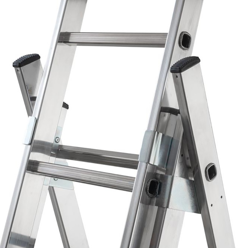 La scala trasformabile a tre tronchiREGOLO 3 è dotata di una barra stabilizzatrice con sistema di regolazione tramite pedale.