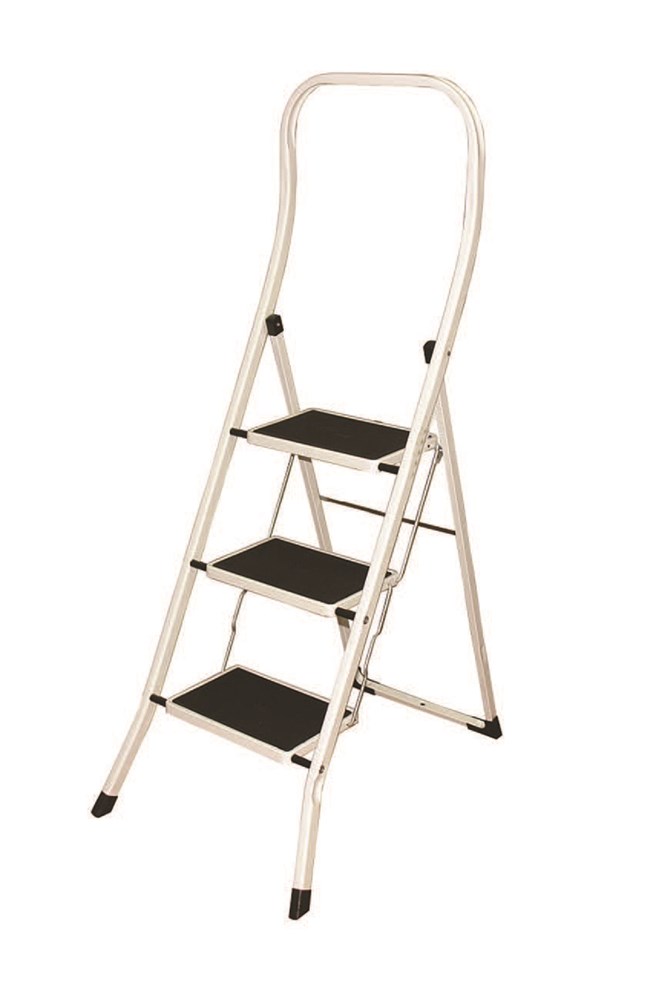 Sgabello in acciaio verniciato. Gradini piani ricoperti in gomma antiscivolo. Parapetto di sicurezza da 60 cm