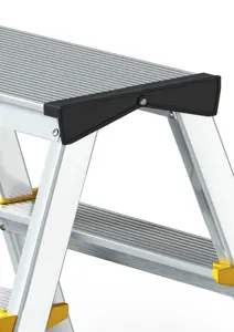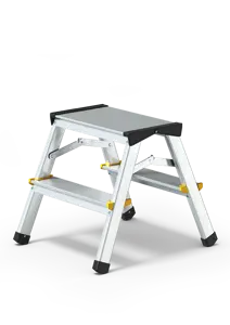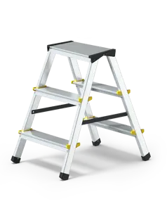 Leggero a doppia salita con gradini in alluminio estruso antisdrucciolo.