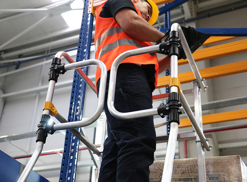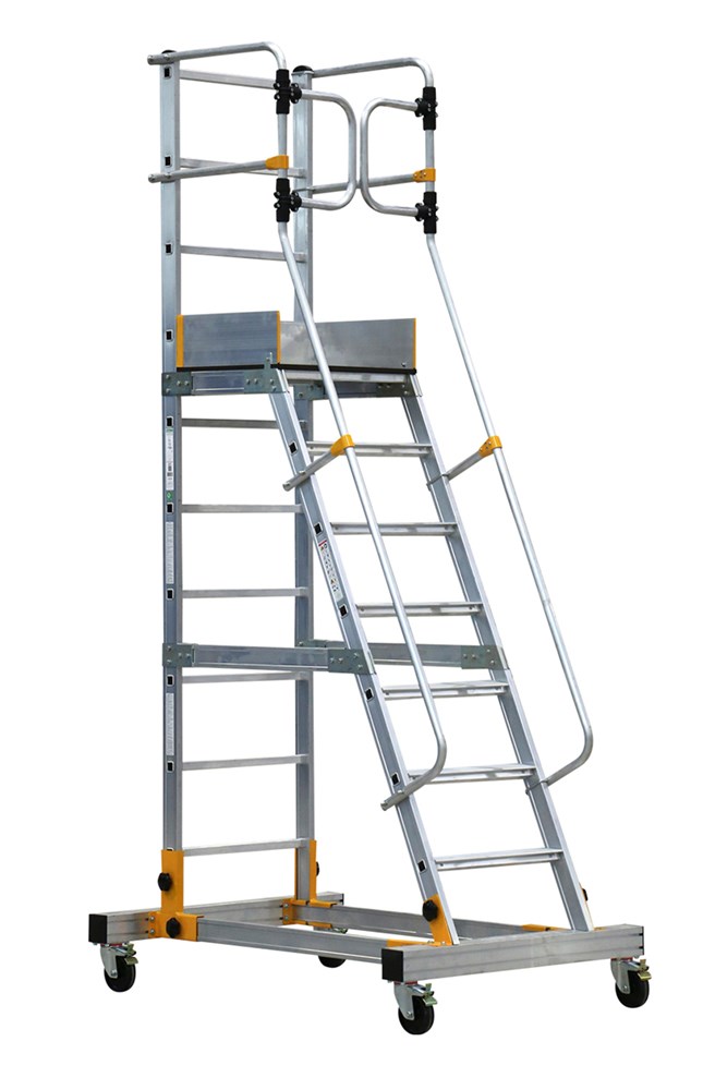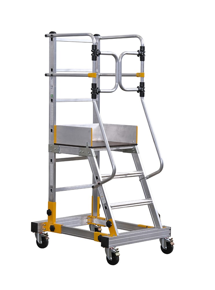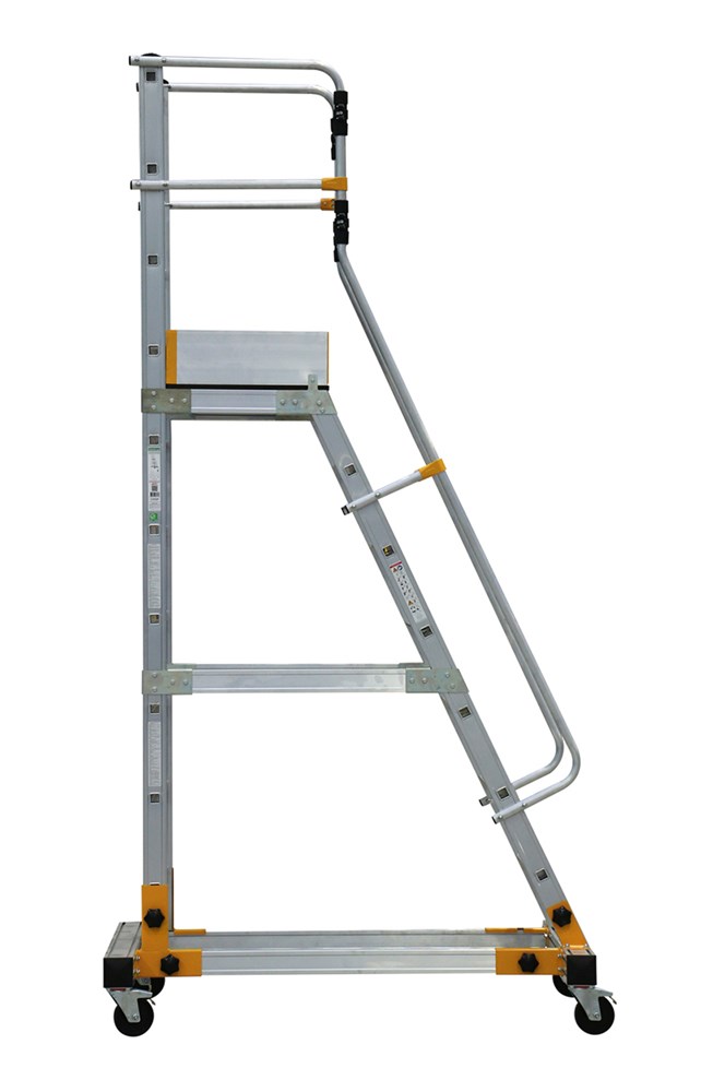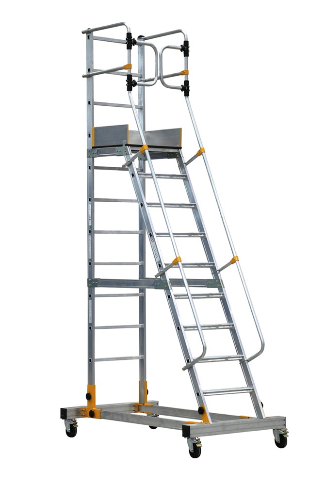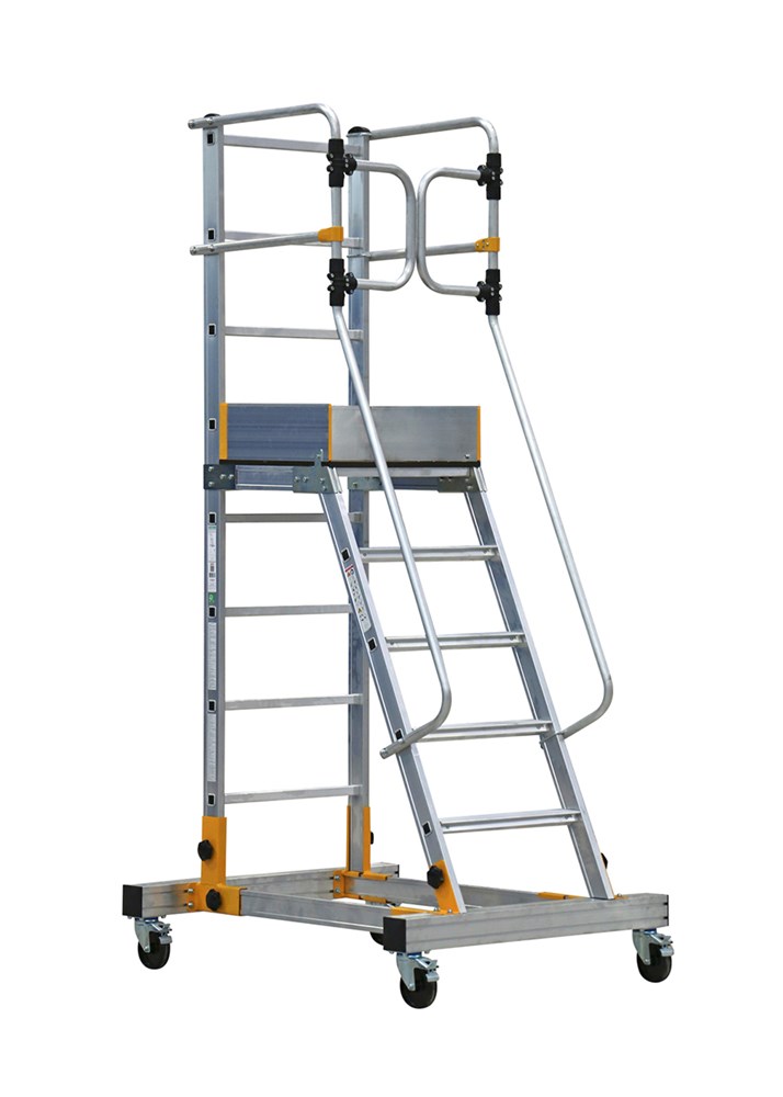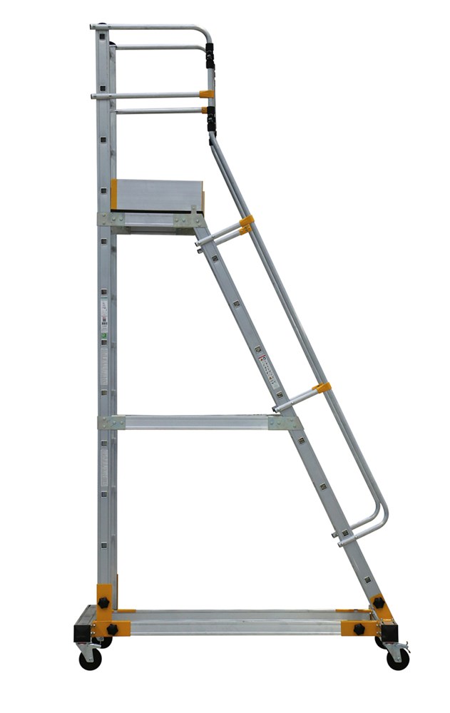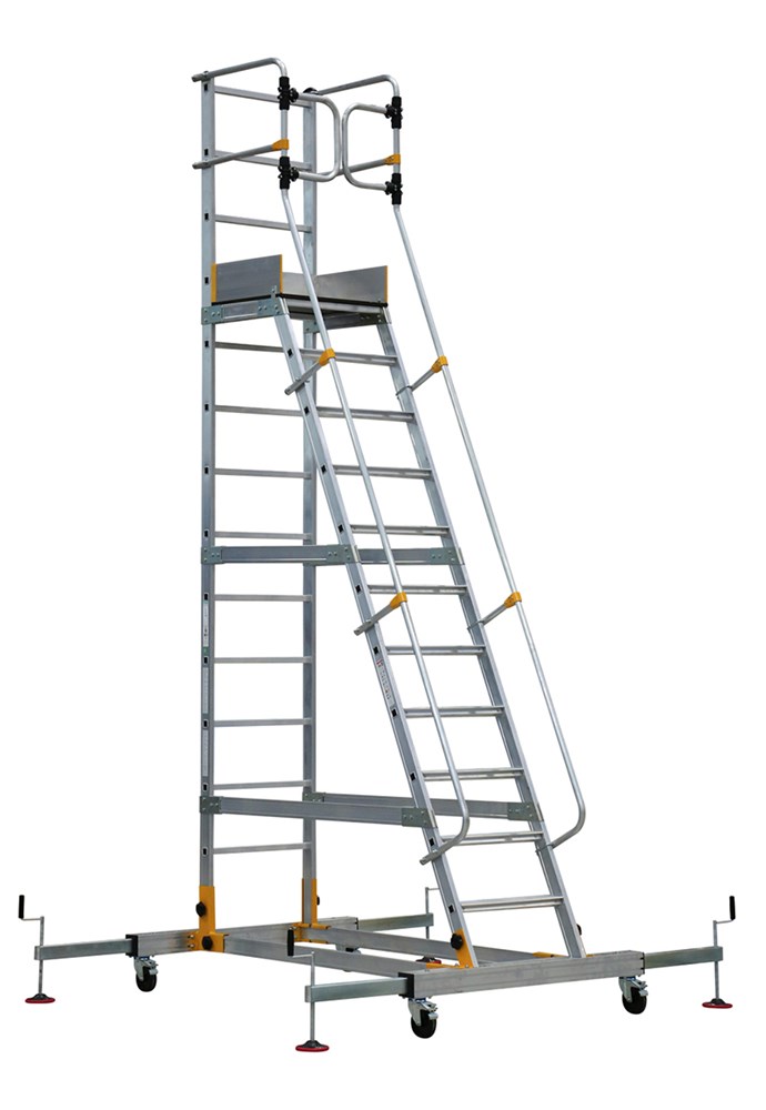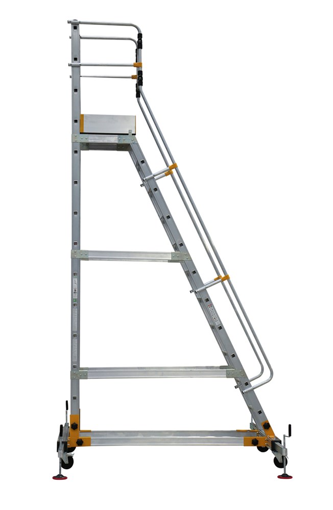 Scala a castello a gradini ad un tronco di salita con 4 ruote con freno e schienale verticale