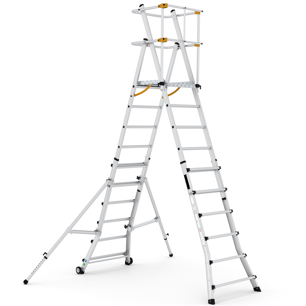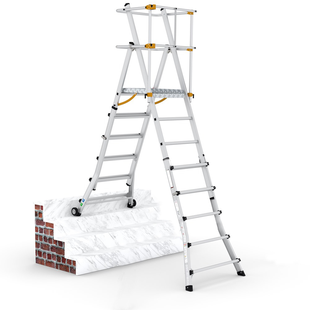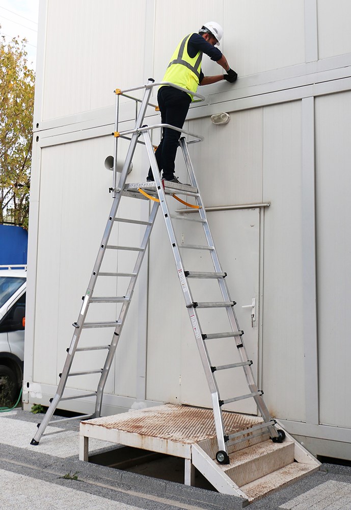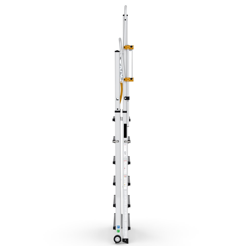 Scala Telescopica e trasportabile con protezione a 360° con cancelletto di sicurezza, dotata di allargatori telescopici regolabili, uso professionale