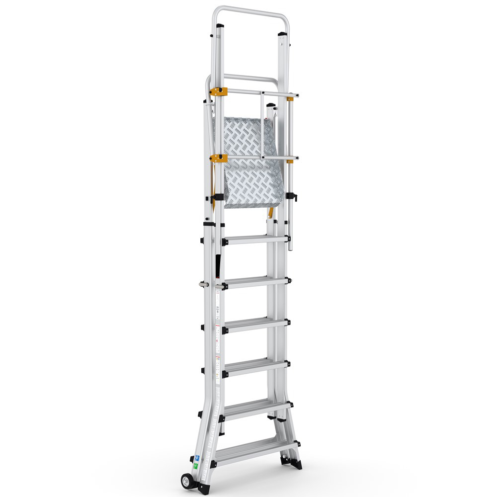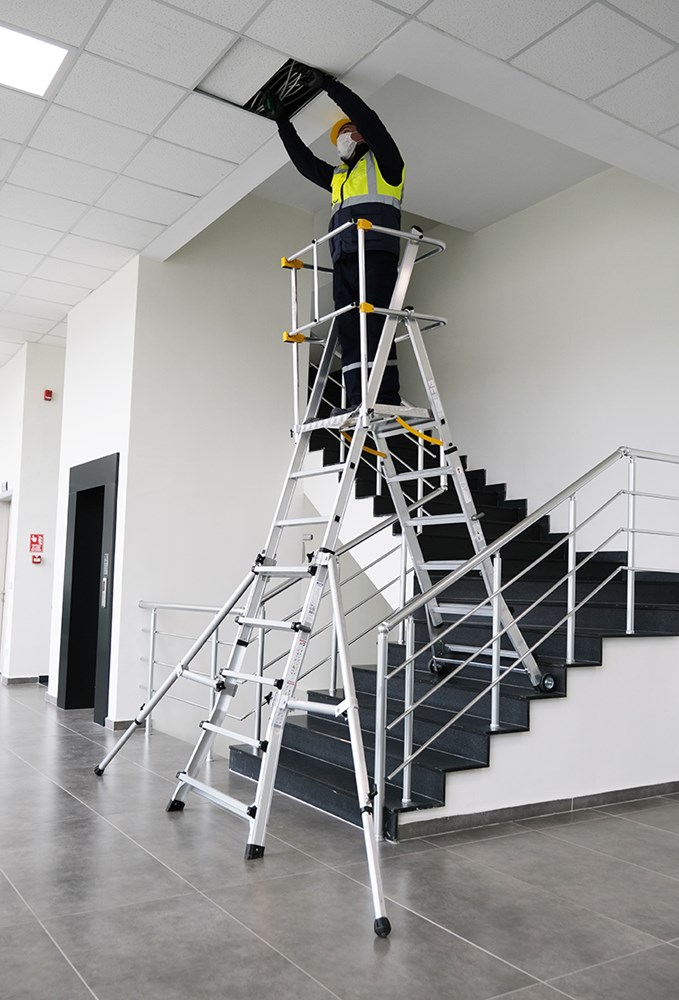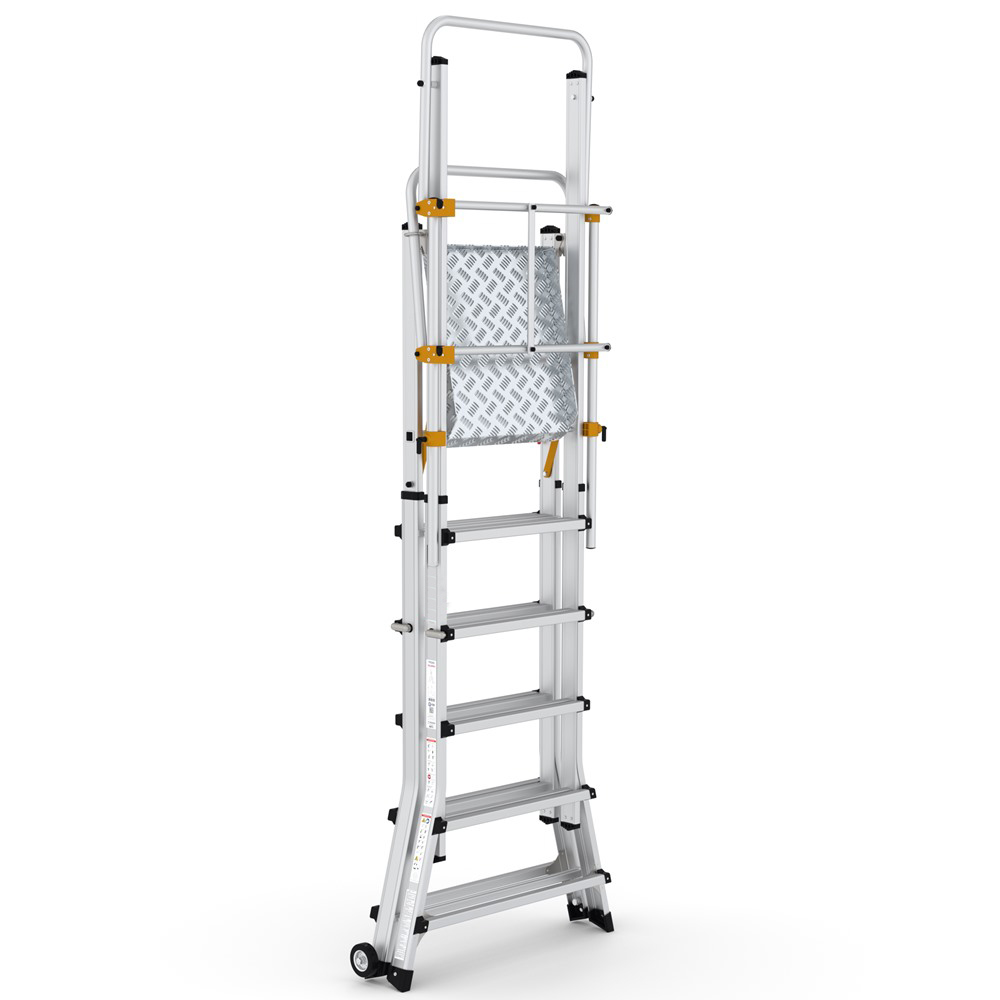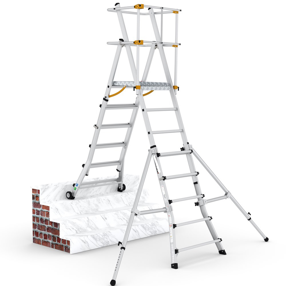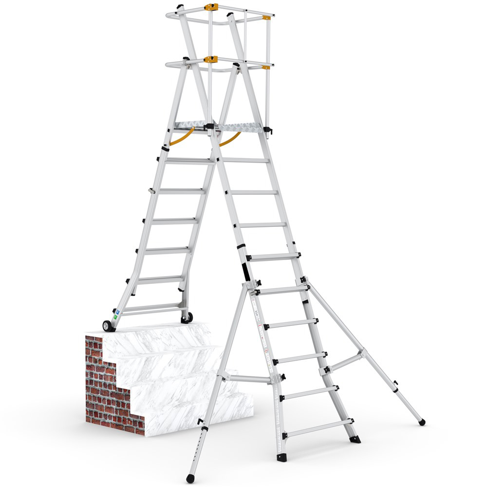 Scala Telescopica e trasportabile con protezione a 360° con cancelletto di sicurezza, dotata di allargatori telescopici regolabili, uso professionale