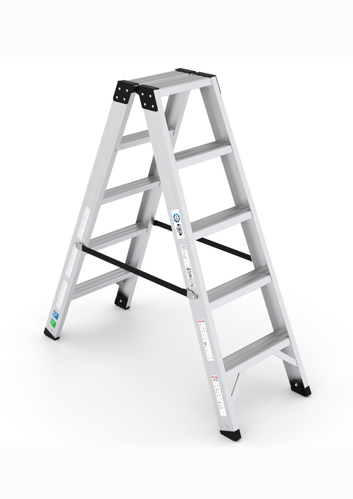 Scala a doppia salita a gradini piani rivettati ai montanti