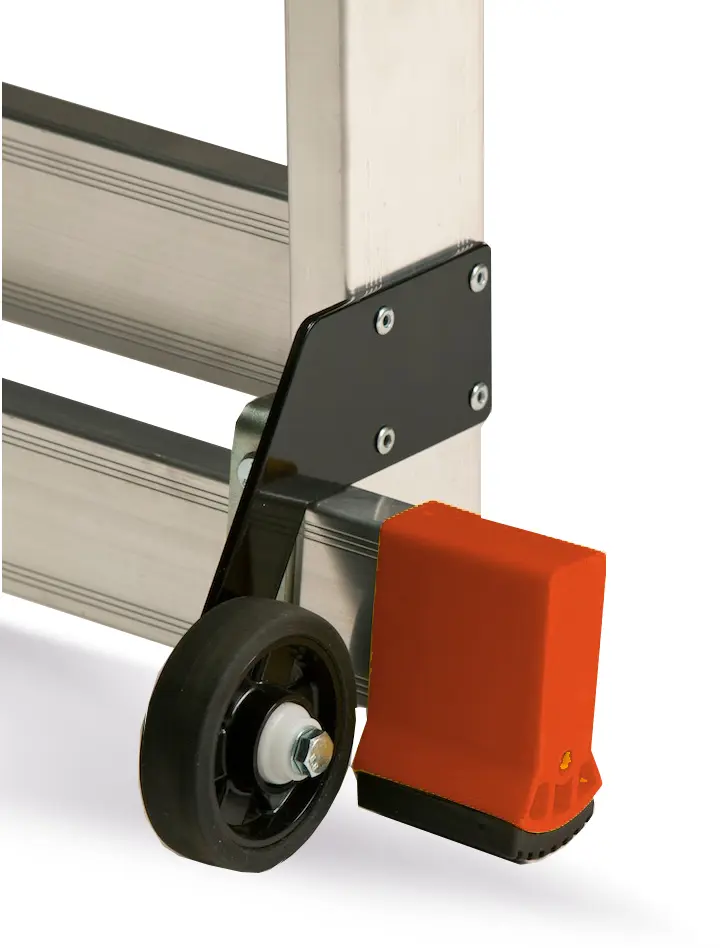 E' attivo quando la scala è in opera in posizione di lavoro; si disattiva non appena l’operatore solleva la scala che può essere così facilmente spinta fino al luogo di lavoro.