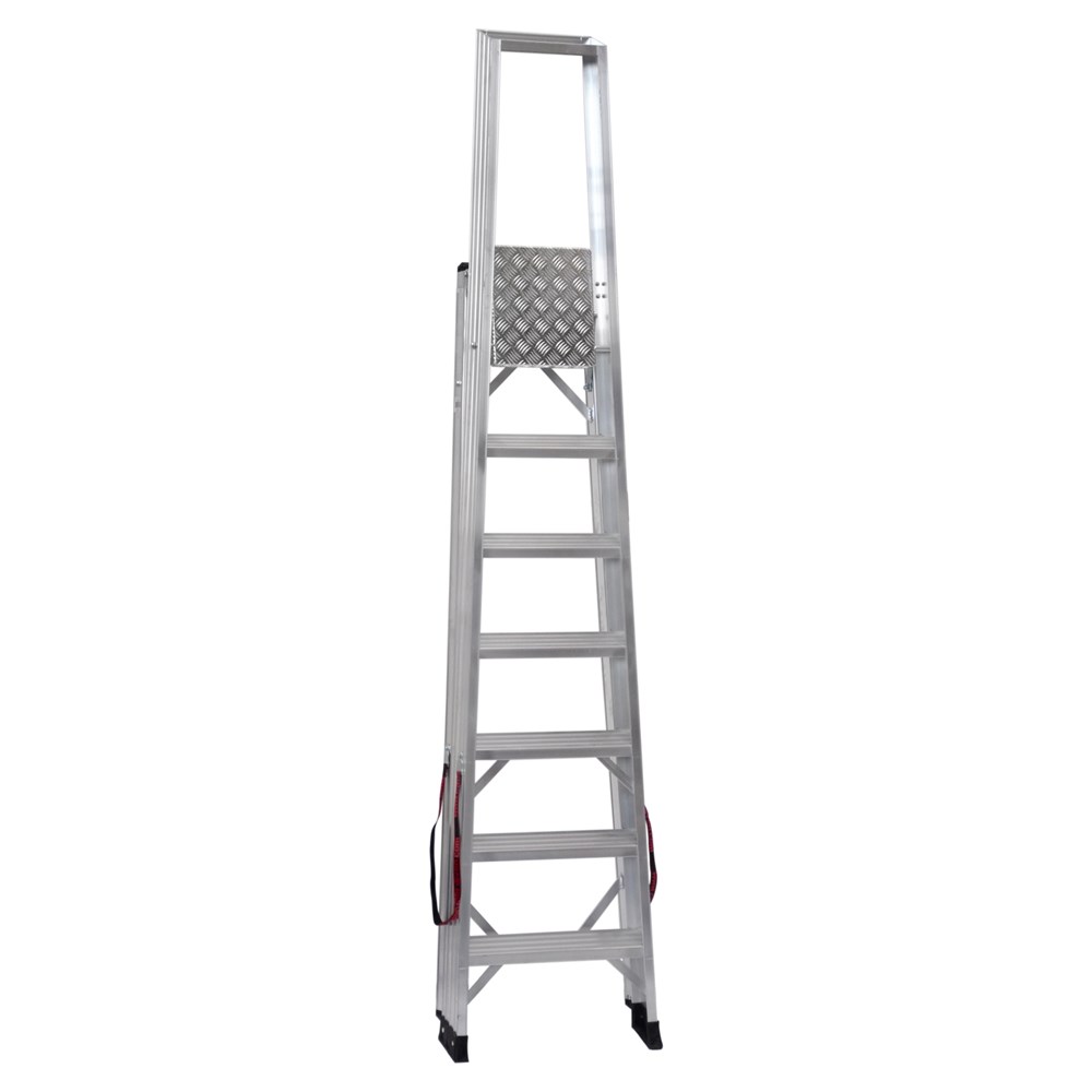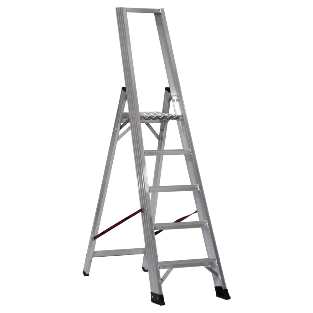 Scala con piattaforma in alluminio, guardacorpo e gradini piani maggiorati