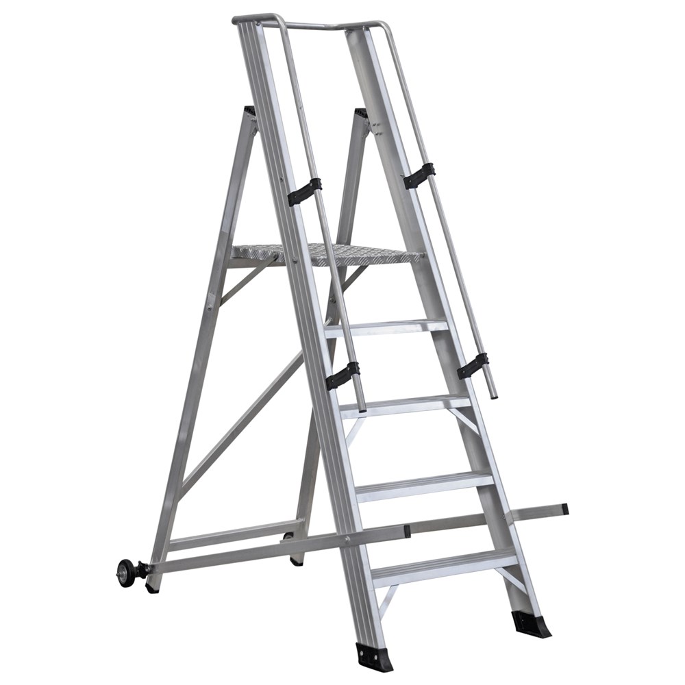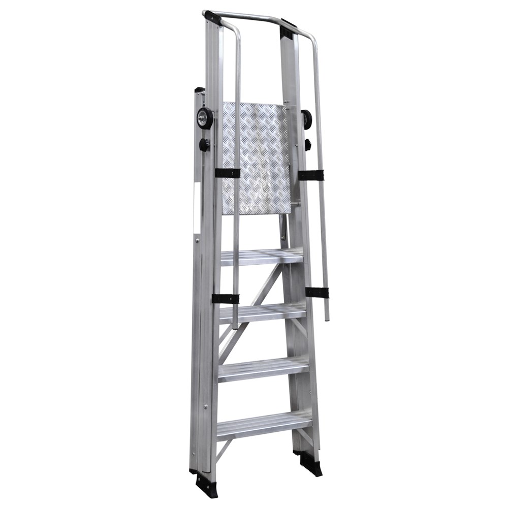 Scala con piattaforma in alluminio, guardacorpo con larghezza e gradini piani maggiorati