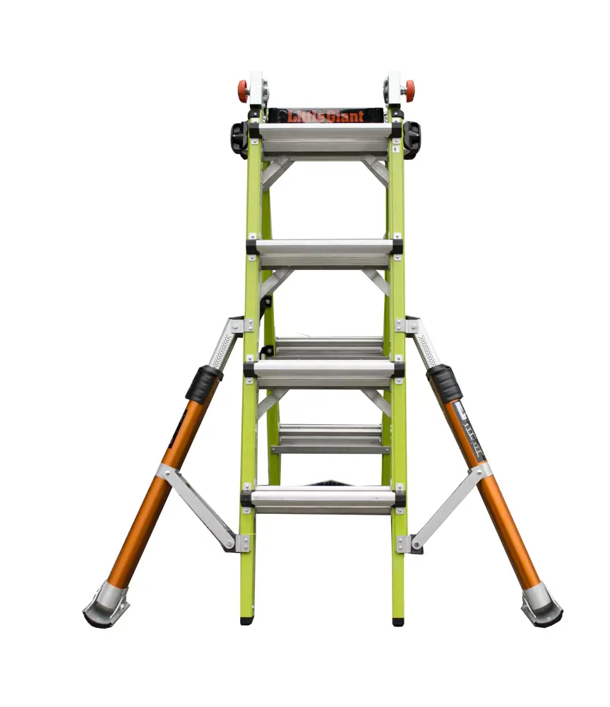 Scala telescopica multiposizione in vetroresina isolante con stabilizzatori regolabili. Scala telescopica in vetroresina dielettrica. Per utilizzo intensivo. Super accessoriata