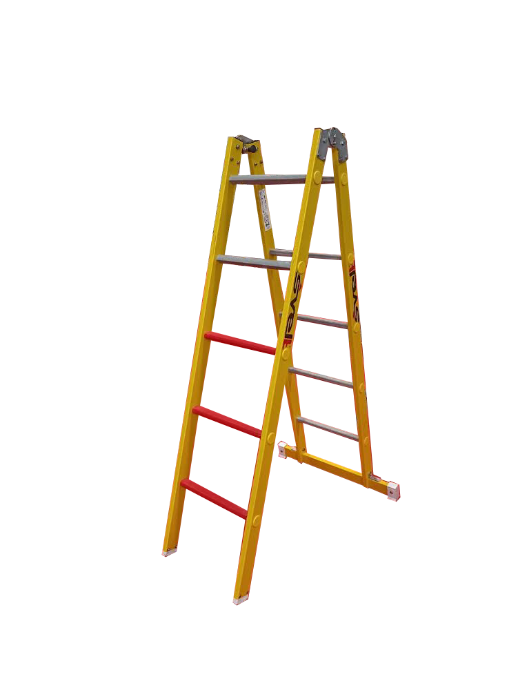 Scala 100% in vetroresina isolante (montanti/pioli). Ideale per elettricisti. Trasformabile in appoggio o a cavalletto