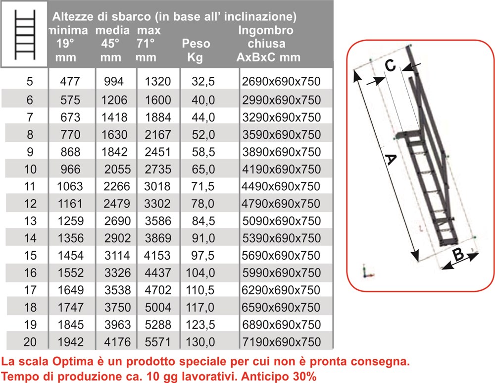 Scala speciale con tempi di produzione ca. 20/25 gg lavorativi.