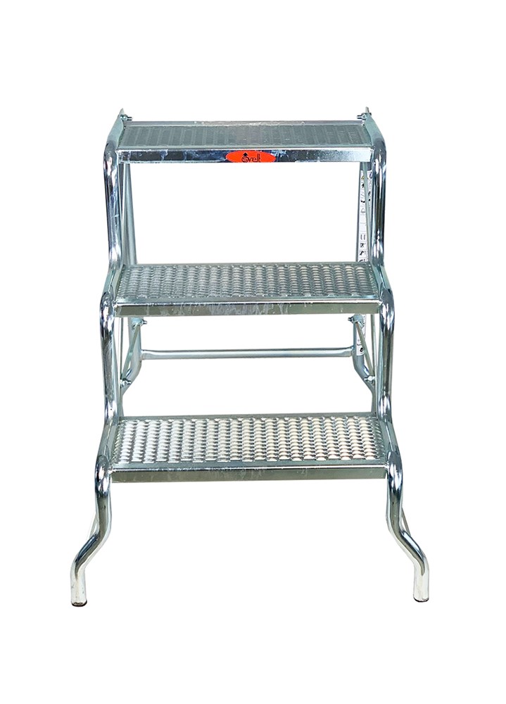 Sgabello 3 gradini in acciaio zincato contro la ruggine, a gradini larghi grigliati, robusto, resistente, chiudibile ideale per cantieri edili