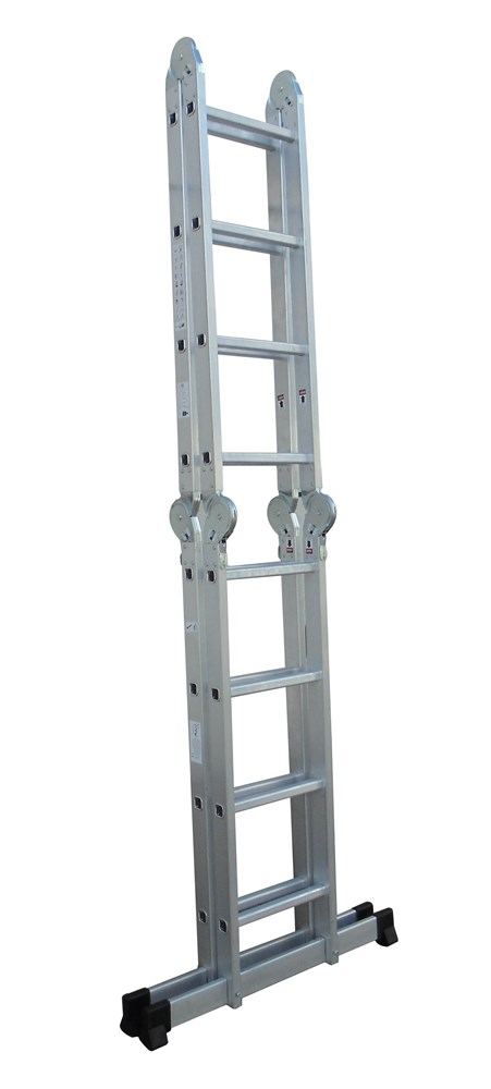Scala multiposizione in alluminio estruso ribordato, è utilizzabile sia come scala doppia che d’appoggio.