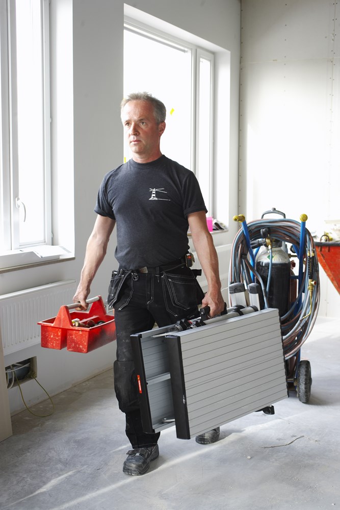 Da cm 50 a cm 88 in pochi secondi. Per utilizzo professionale è costruita in alluminio anodizzato che non sporca le mani dell'operatore. I gradini sono fissati ai montanti con sistema brevettato. La piattaforma presenta una lunghezza maggiore per potersi comodamente spostare lateralmente alla zona di intervento.