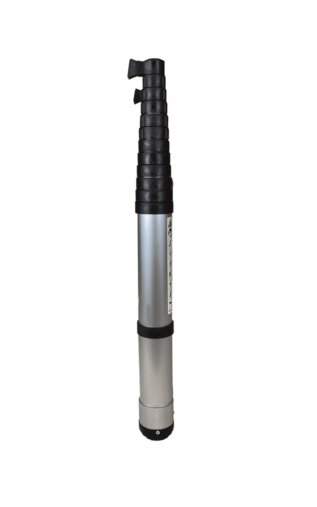 Concepita per uso professionale è telescopica, ultracompatta, in alluminio anodizzato dotata di allargatore alla base richiudibile.