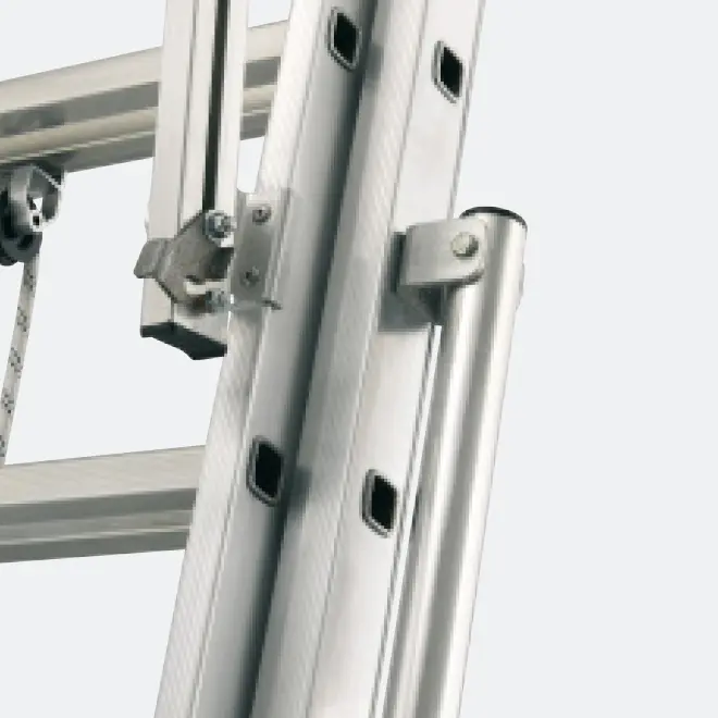 Questa scala telescopica da appoggio al muro, interamente in alluminio, è dotata di guardacorpo, piattaforma ed allargatori di base integrati per garantire un elevato livello di sicurezza.