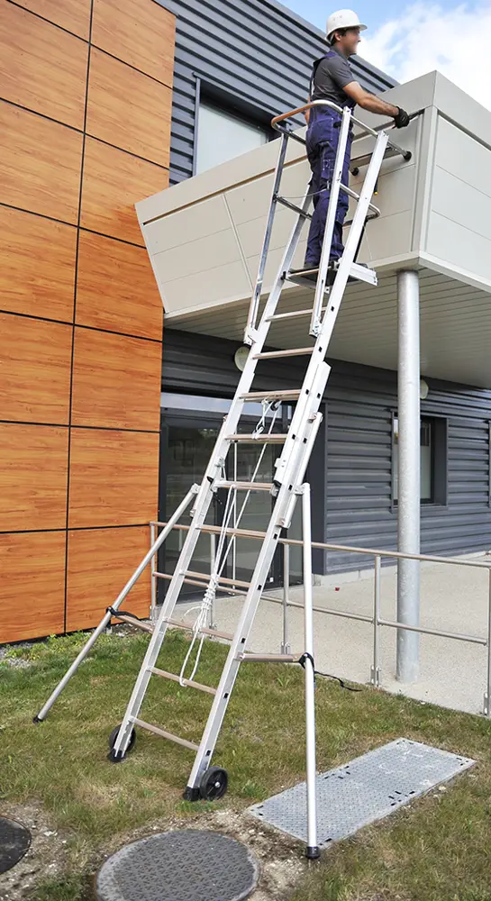 Postazione di lavoro a metà tra una scala e una piattaforma aerea