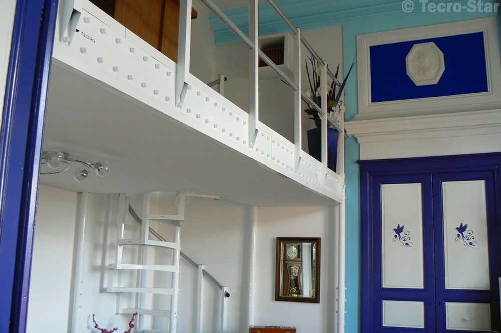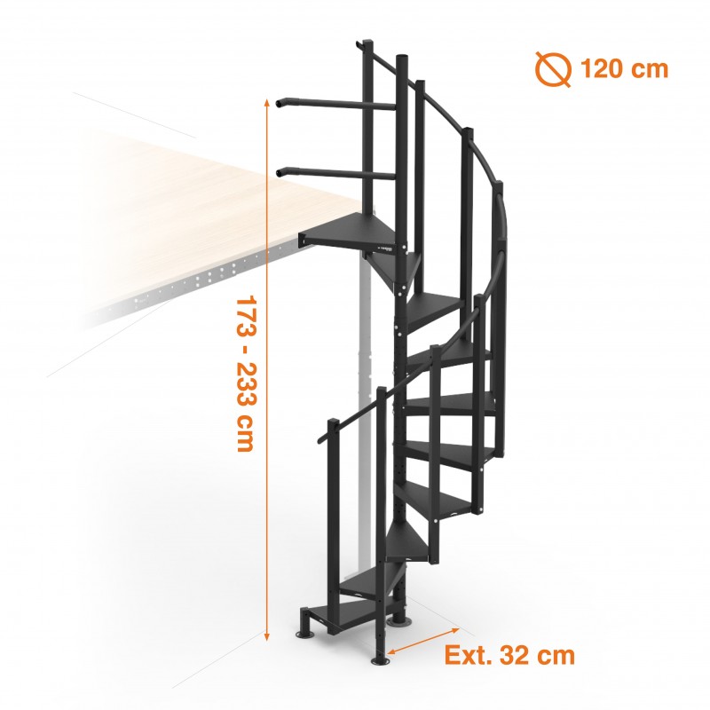 Creata in acciaio verniciato per essere agevolmente montata dall’utilizzatore può essere utilizzata in abitazioni o soppalchi ad uso domestico.