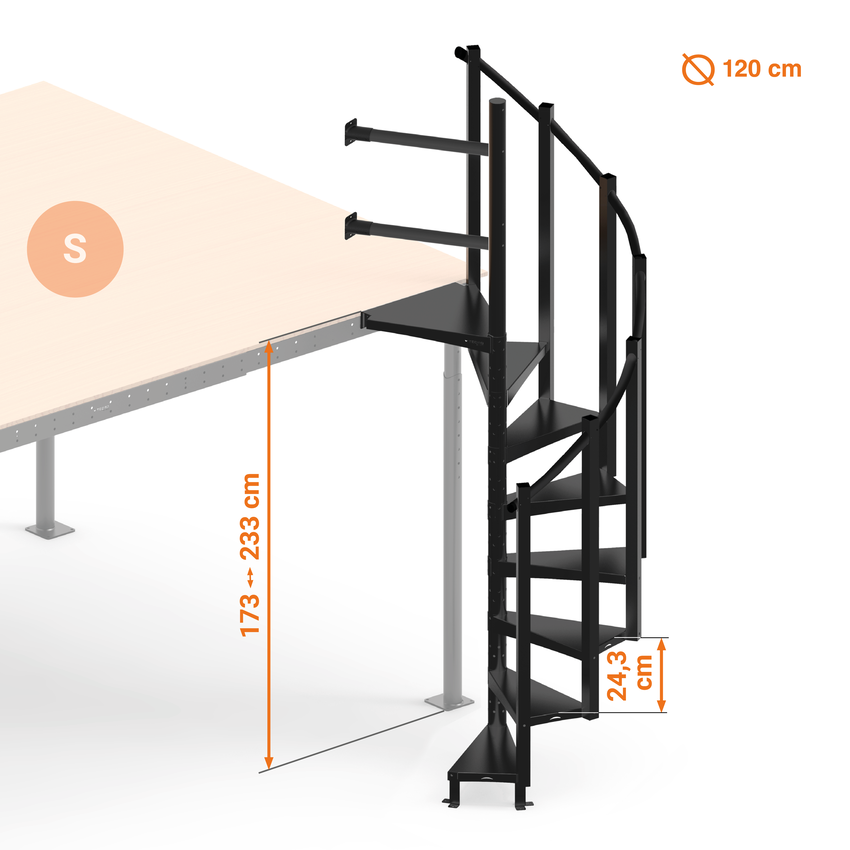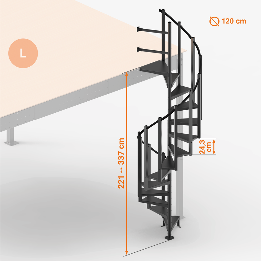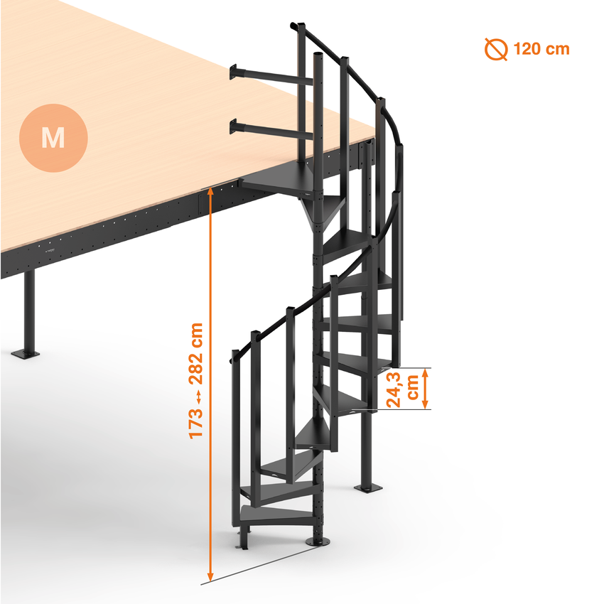 E’ regolabile ogni 12 cm ed utilizzabile su tutti i soppalchi Small, Medium e Large Svelt.