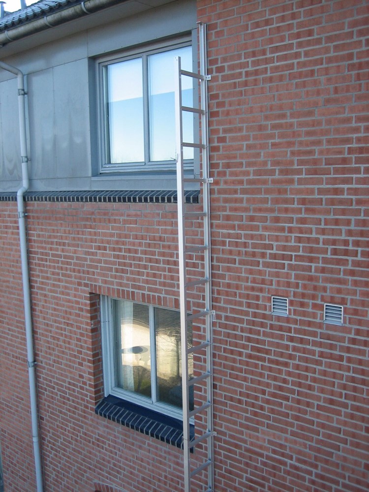 Ogni scala rimane fissata alla parete dell’edificio in modo stabile, discreto ed “invisibile”. In caso di emergenza la scala si apre in pochi secondi azionando una cerniera di apertura.
