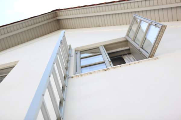 E’ costituito da scale in alluminio anodizzato che, quando non vengono utilizzate restano chiuse e sembrano un canale di gronda, si mimetizzano e non “sporcano” l’estetica della facciata dell’edificio.