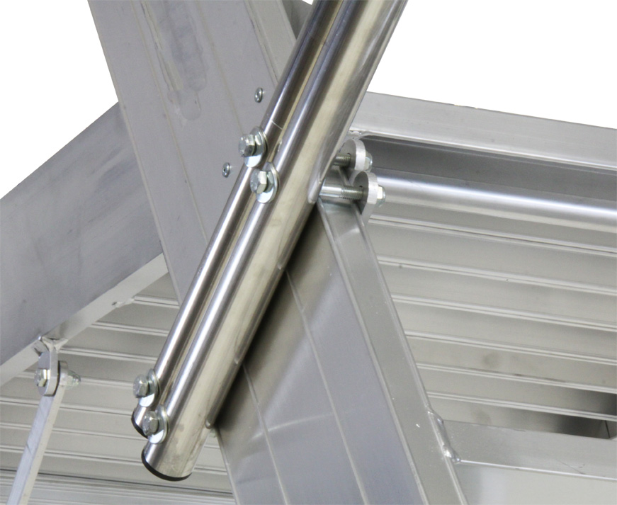 La rampa di salita larga e comoda è molto inclinata (55°) per una salita più semplice garantita sia dai gradini piani antisdrucciolo maggiorati profondi 20 cm e con distanza di soli 23 cm l’uno dall’altro che dall’ampio e comodo corrimano.