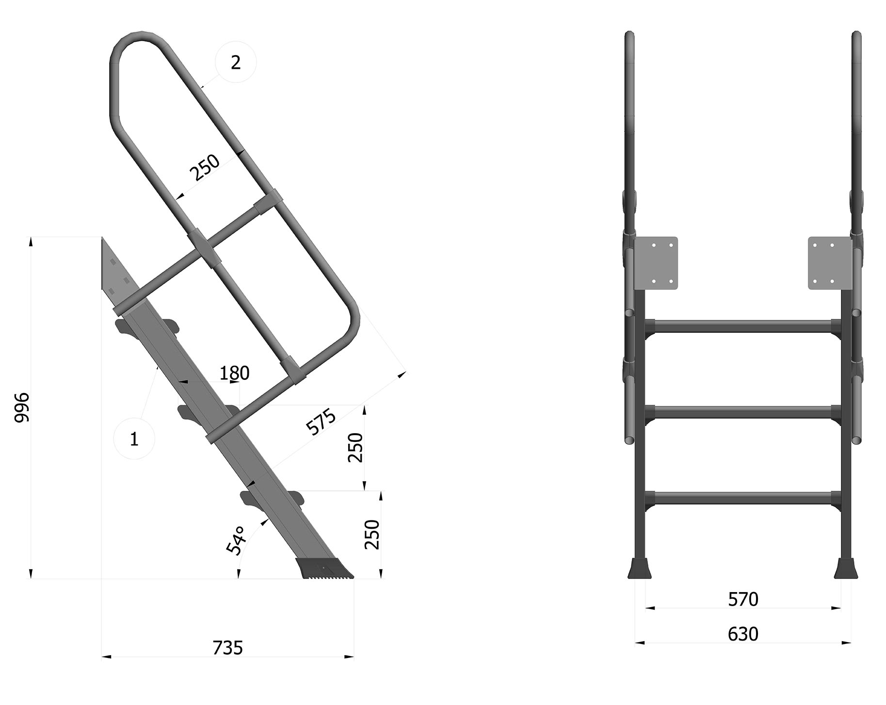 - Altezza di sbarco max = 250 mm in più rispetto all'altezza ultimo gradino