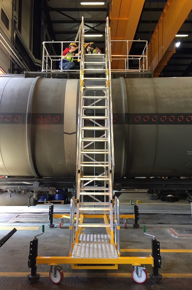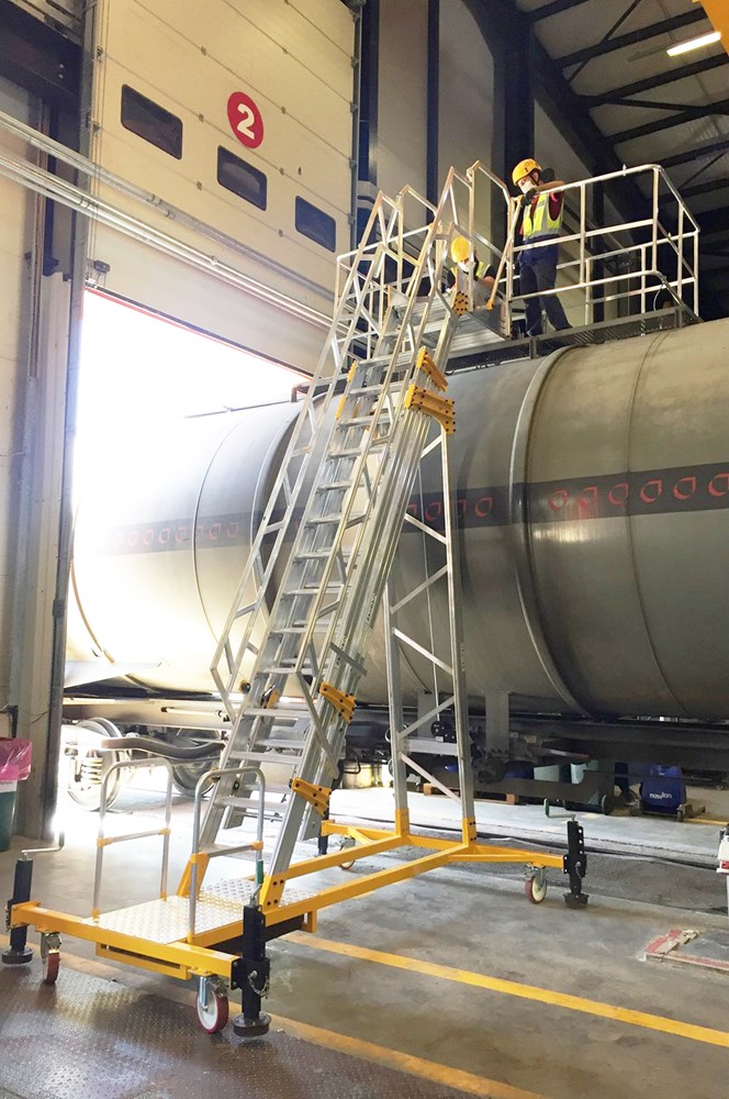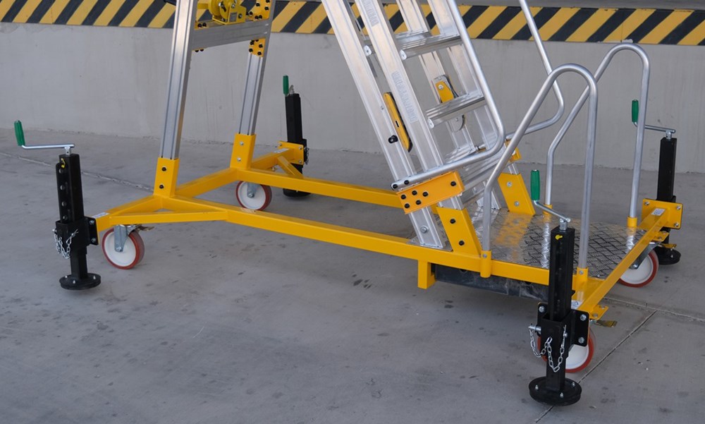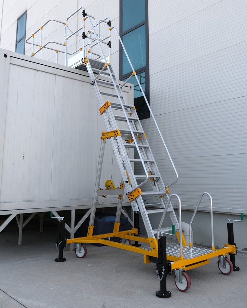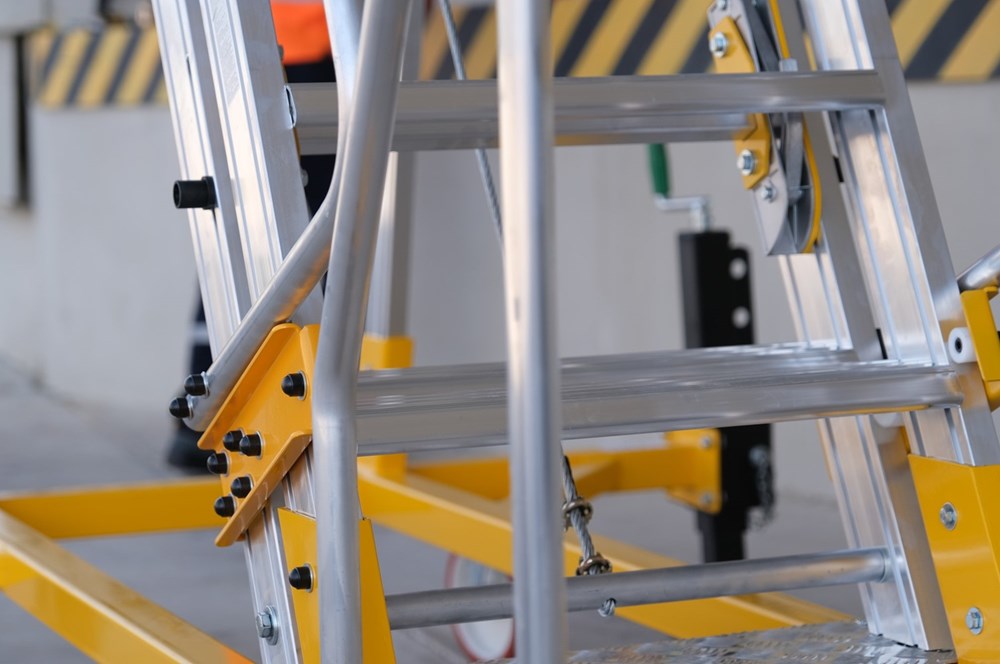 Piattaforma con scala in alluminio telescopica e cestello a sbalzo. Pronta consegna !!!