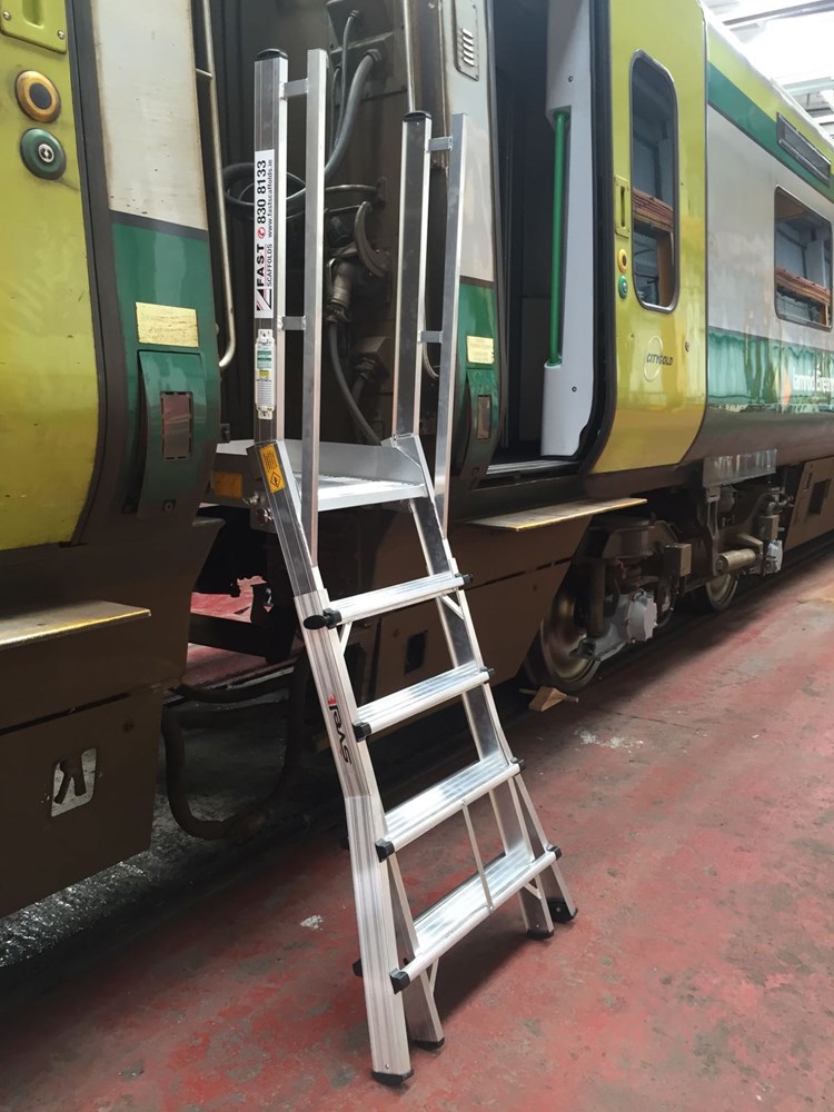 Scala telescopica e trasportabile con protezione laterale di salita.