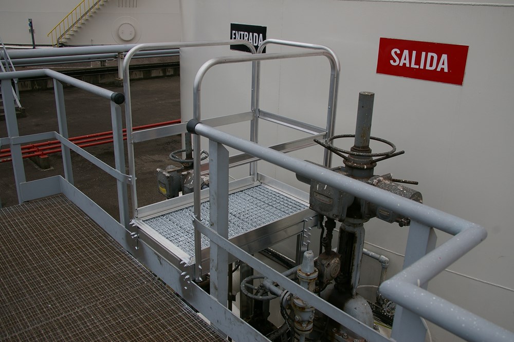 Strutture specifiche in alluminio prodotte e concepite per impianti petrolchimici. Le piattaforme sono in alluminio e antiscivolo con pavimento in Tramex con parapetto di protezione. Passerelle con pavimento in lamiera di alluminio, Tramex o grigliato. Passaggi per tubazioni. Piattaforme di scavalcamento e accesso per cisterne e silos. Scale di scavalcamento. Identificare il modello che si adatta meglio alle vostre necessità ed inviare la richiesta a preventivi@svelt.it. indicando il tipo di lavoro e le dimensioni richieste. Risponderemo con una soluzione nel più breve tempo possibile.