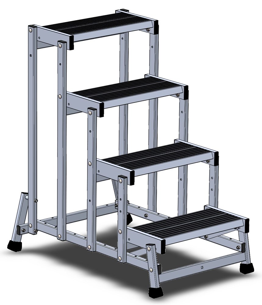 Sgabello professionale da 1 a 4 gradini in alluminio estruso ad un tronco di salita.
