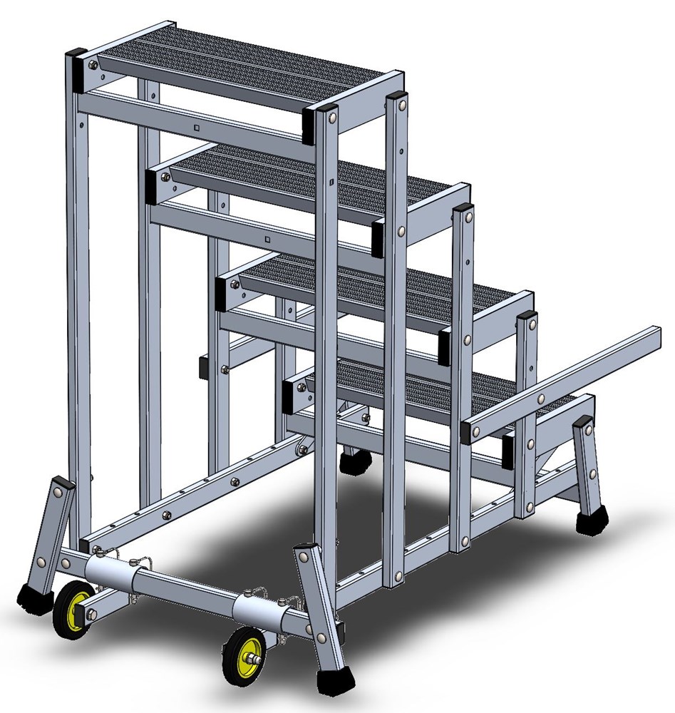 Sgabello Industriale avvitato con gradini larghi e personalizzabile con diversi accessori optional
