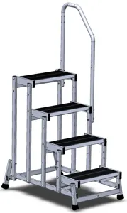 Sgabello Industriale avvitato con gradini larghi e parapetti, personalizzabile con diversi accessori optional