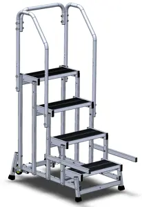 Sgabello professionale da 2 a 4 gradini in alluminio estruso ad un tronco di salita.