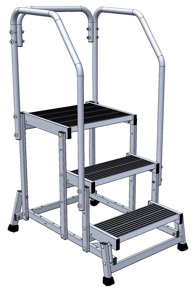 Sgabello Industriale avvitato con piattaforma da 40 cm di profondità, parapetti, gradini larghi e personalizzabile con diversi accessori optional