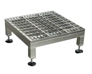 - Piattaforma in alluminio grigliato drenante con piedini telescopici.