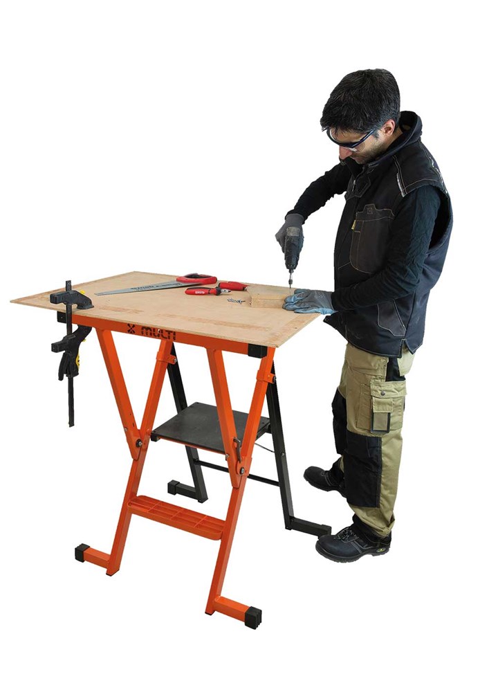 Dotato di pianetto porta attrezzi e pieghevole per un più facile trasporto.