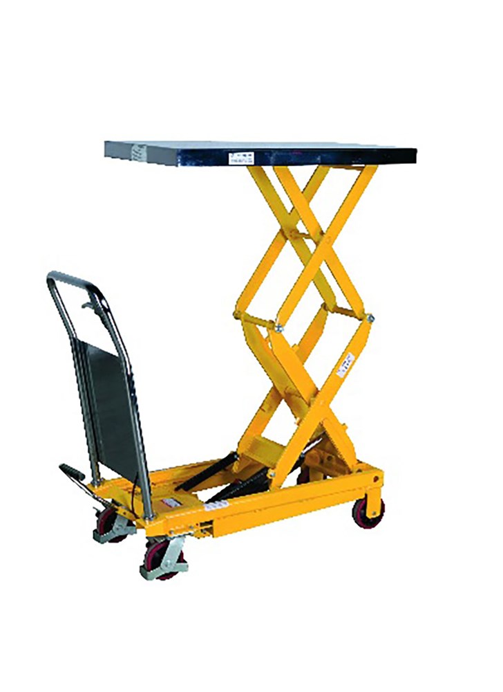 Piattaforma elevatrice trasportabile in acciaio con sollevamento tramite pompa a pedale. Altezza max mm 1500