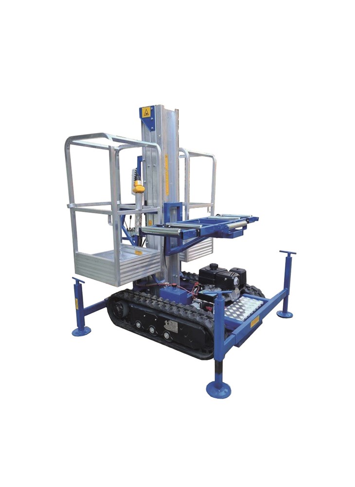 Montaferetri cingolato per 1 o 2 operatori con movimento autonomo a benzina ed elevazione elettrica. Livellatori manuali