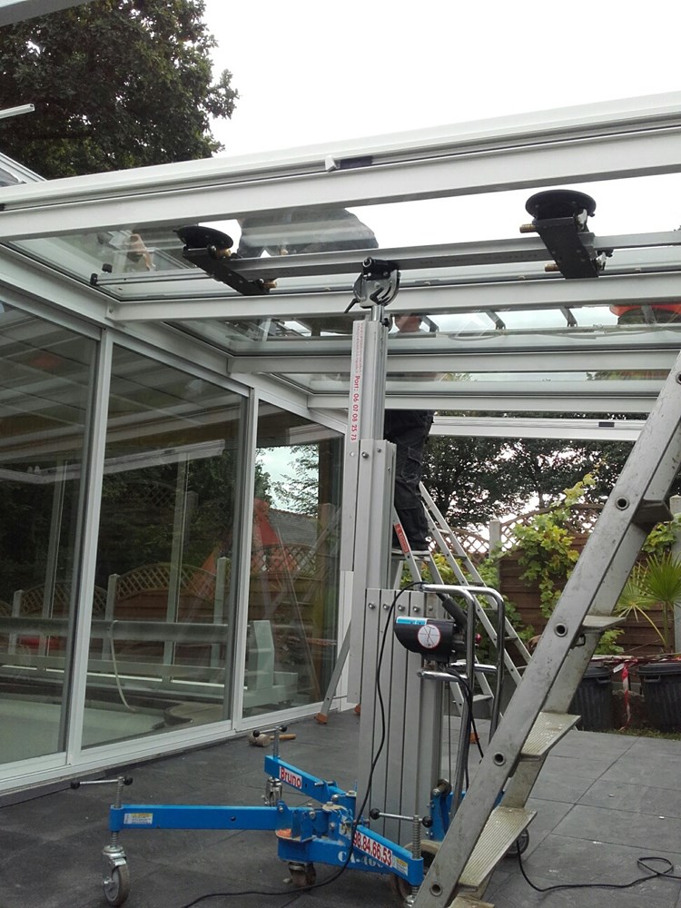 - Supporto in alluminio con 4 ventose manuali a pompetta, per il montaggio di vetri in copertura.