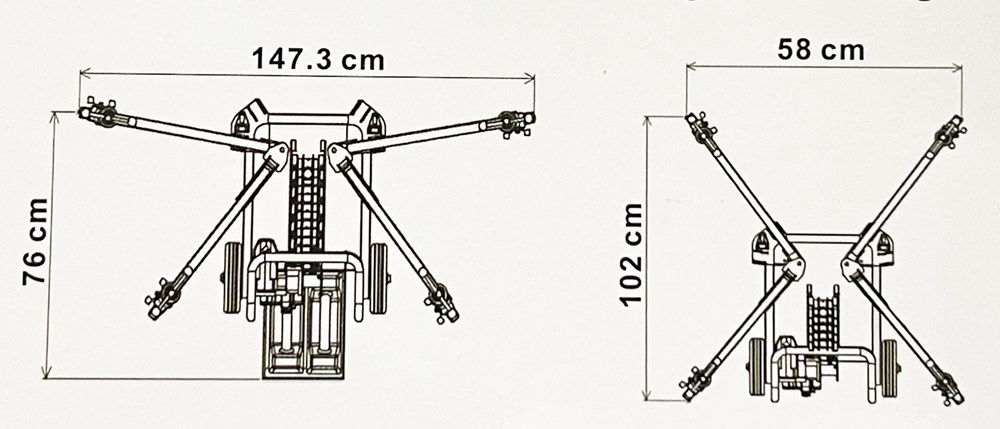 - Ingombro stabilizzatori in condizioni normali larghezza cm 58 - profondità cm 102