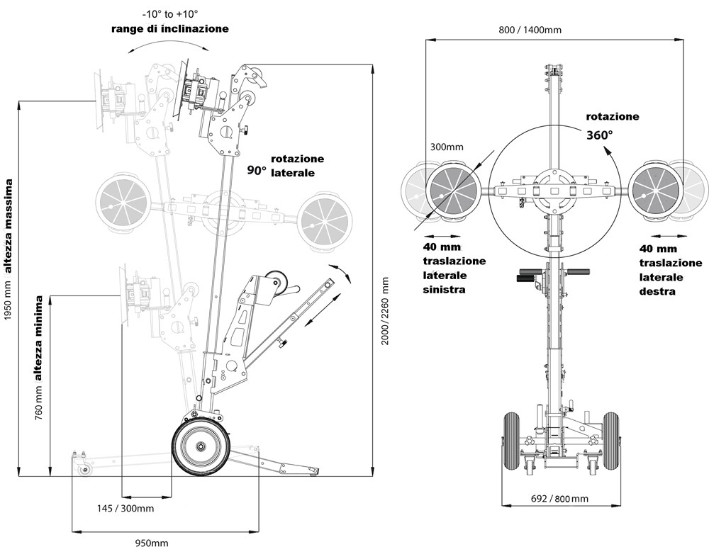 - Altezza massima ventose in posizione verticale (centro ventosa superiore) mm 2750
