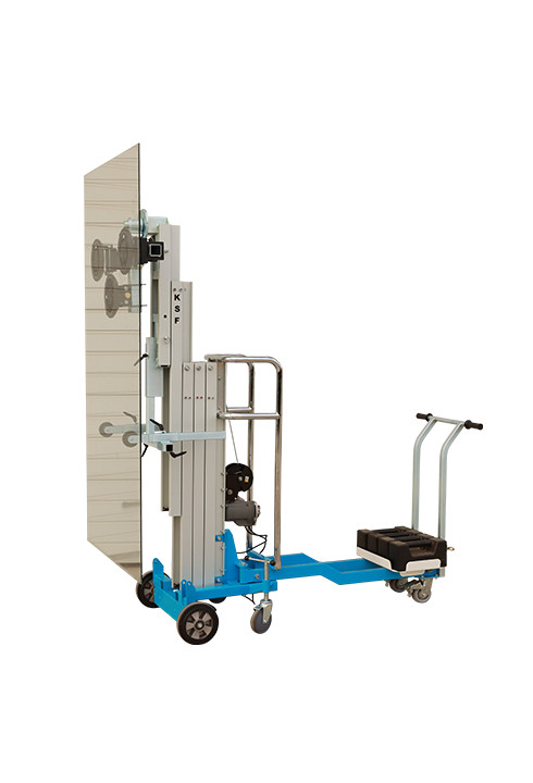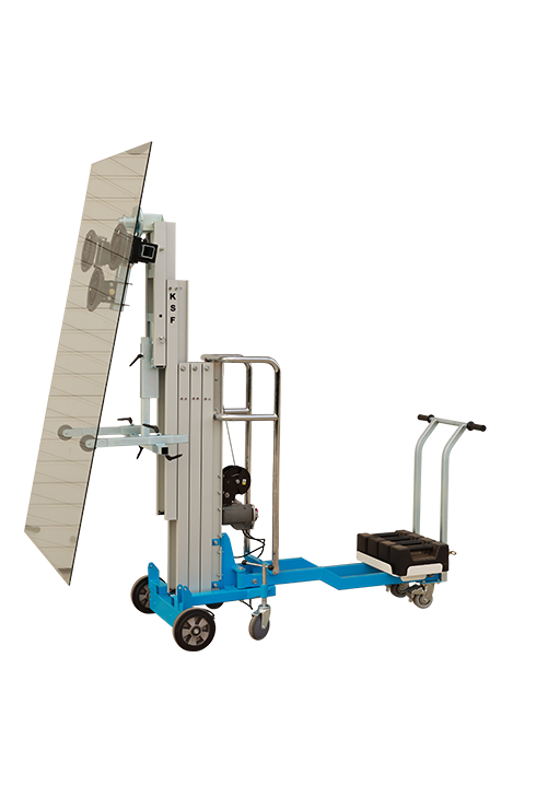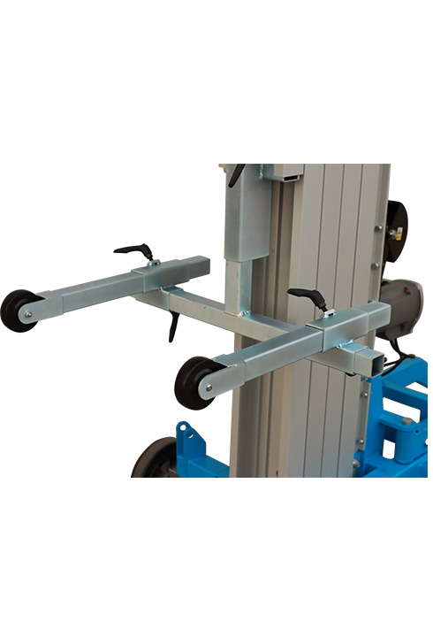 - Kit con contrappesi per lavorare con le forche a filo parete e per lavori in facciata (filomuro) al fine di lavorare con maggiore stabilità e precisione