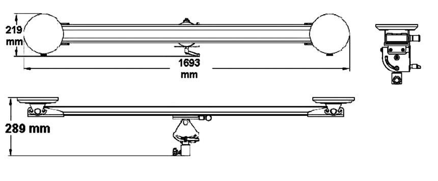 - Supporto in alluminio CA-4V con 4 ventose manuali a pompetta (codice XSOLHOISTE4V) , per il montaggio di vetri in copertura.