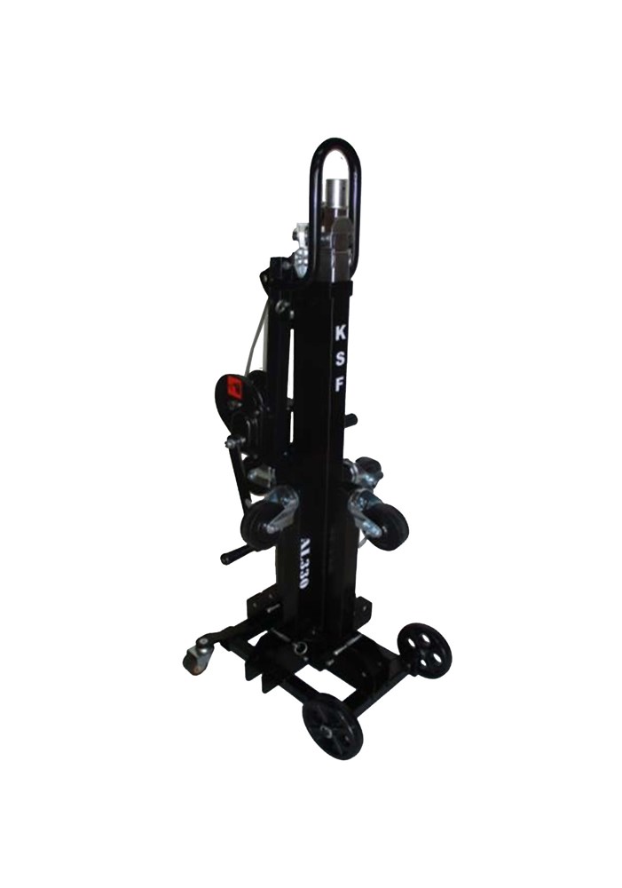 Hoist a cilindro telescopico con funzionamento meccanico tramite verricello.