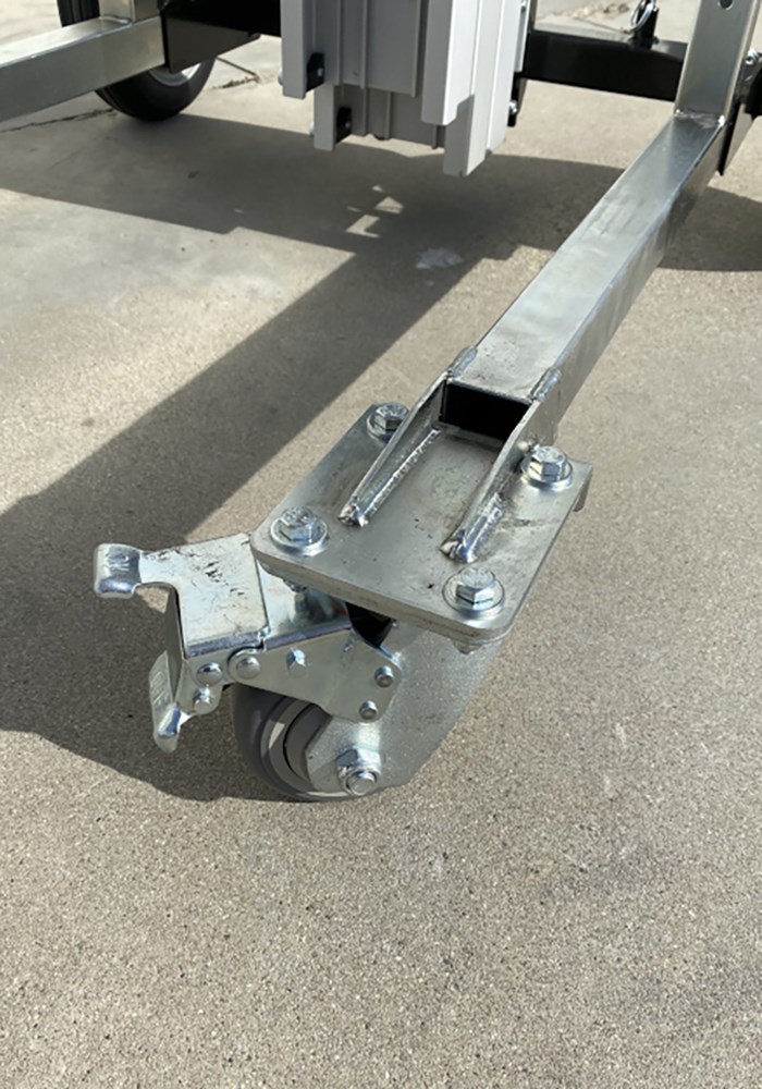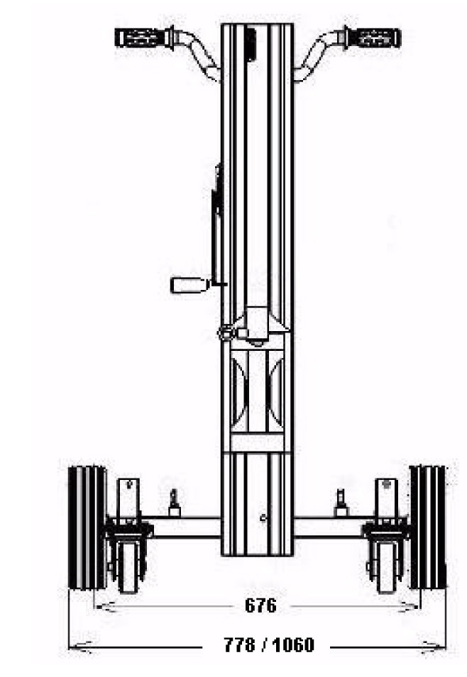 - Due ruote posteriori da Ø 250 mm con interasse regolabile fino a 1060 mm per una maggior stabilità.
