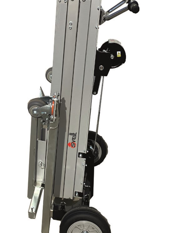 - Due ruote posteriori da Ø 250 mm con interasse regolabile fino a 1060 mm per una maggior stabilità e per facilitare il trasporto su terreni sconnessi o scale.
