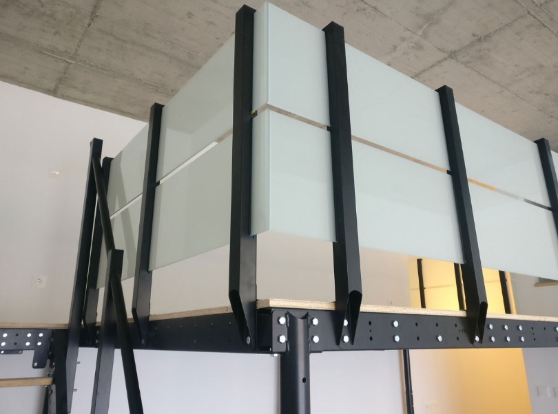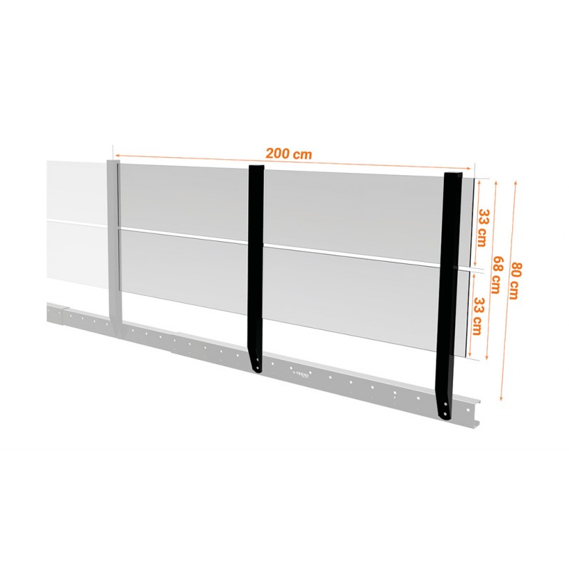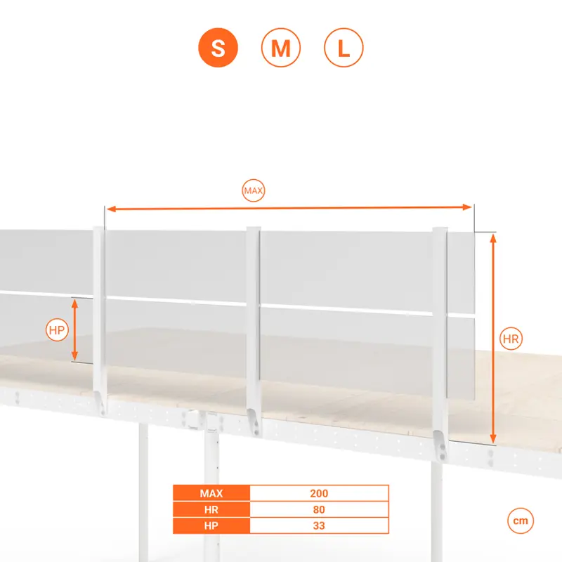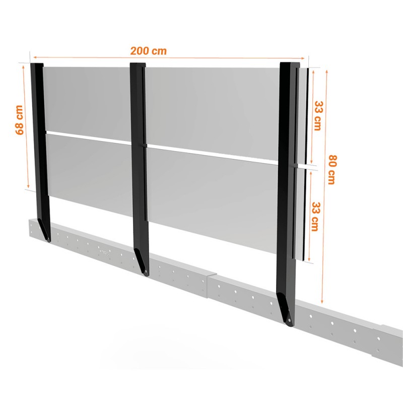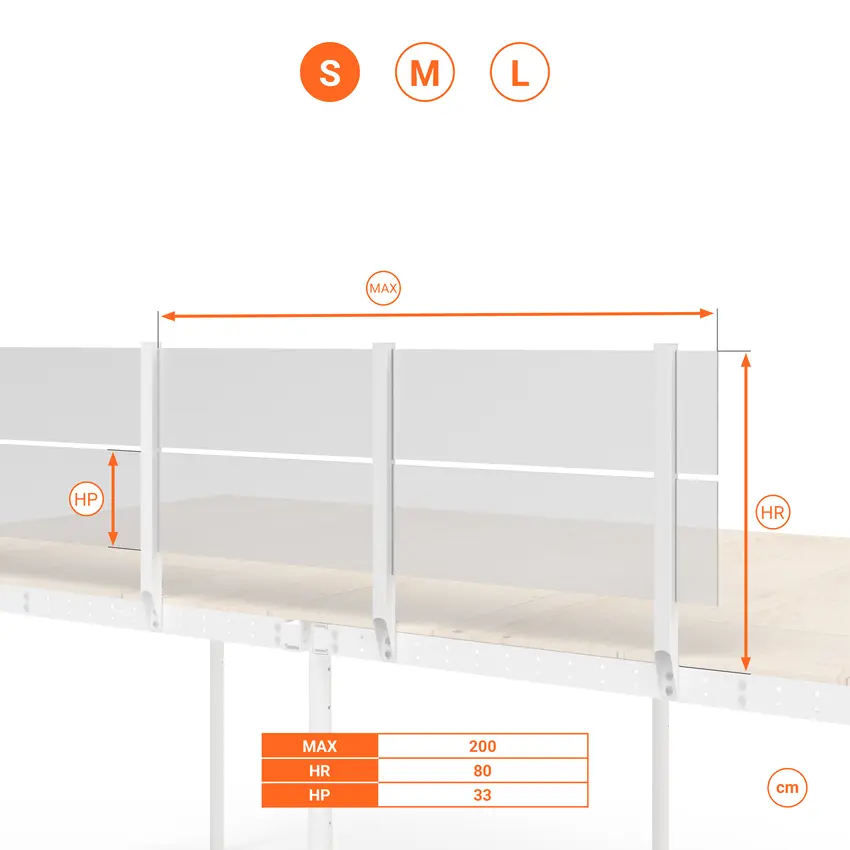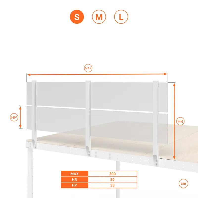 La Balaustra per pannelli è una ringhiera modulare, alta 80 cm e lunga 2 metri, che può essere combinata con diversi tipi di pannelli di recinzione da installare su qualsiasi soppalco della Categoria Small.