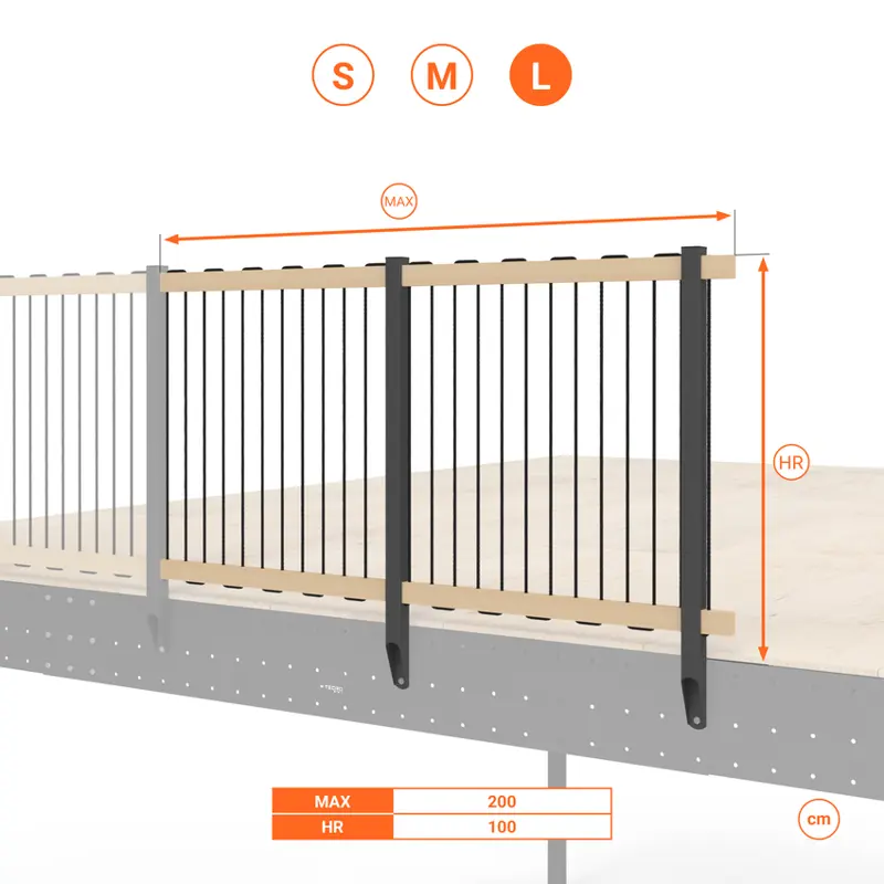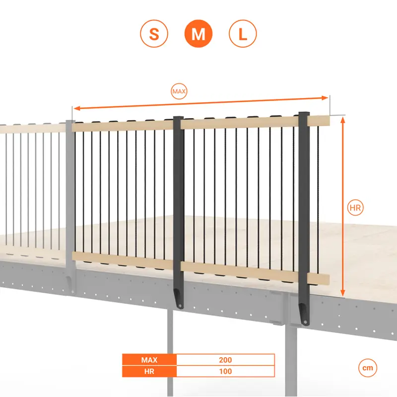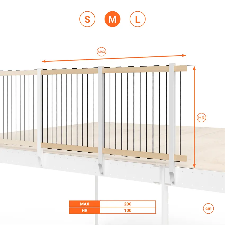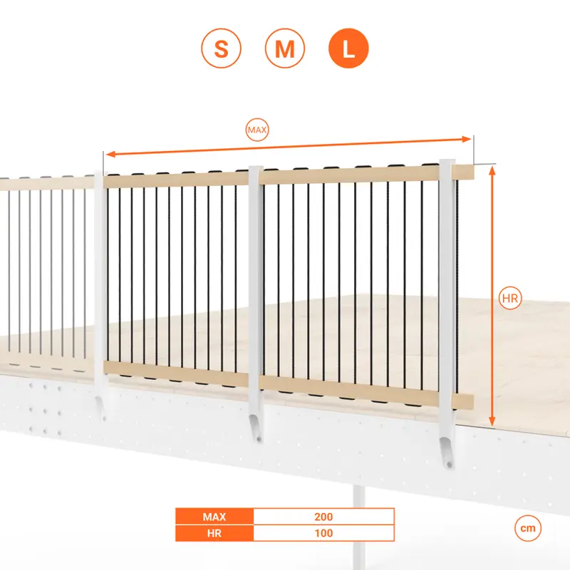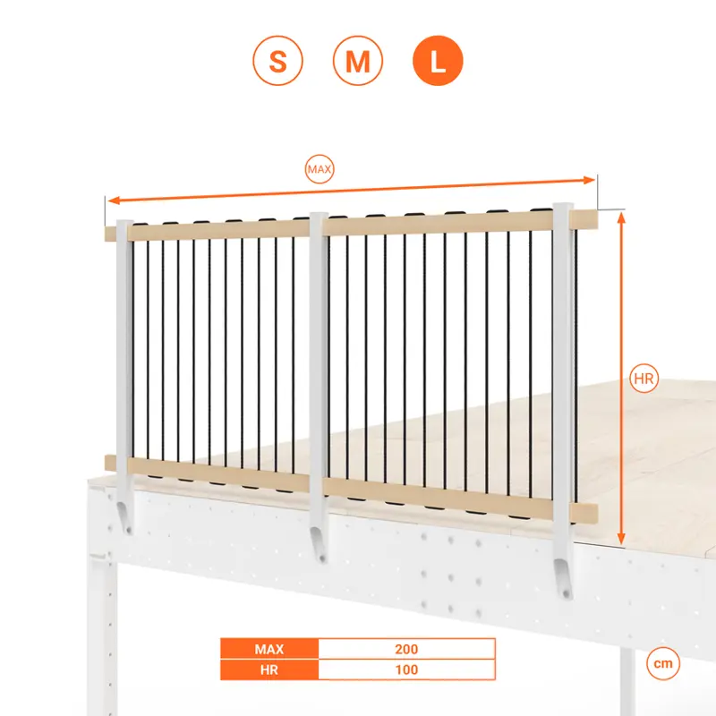- La lunghezza totale può essere estesa utilizzando il kit ringhiera aggiuntiva.