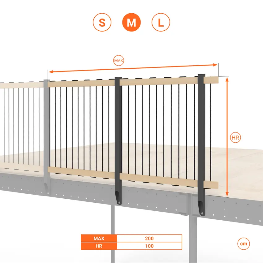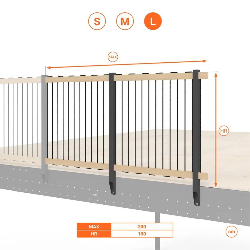 - La lunghezza può essere ridotta posizionando i pali più vicini tra loro