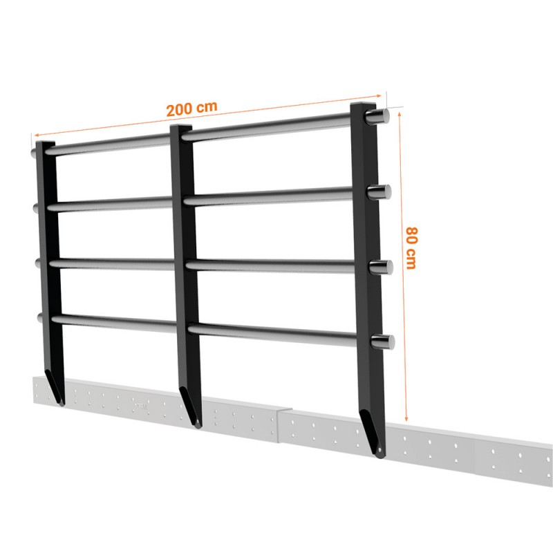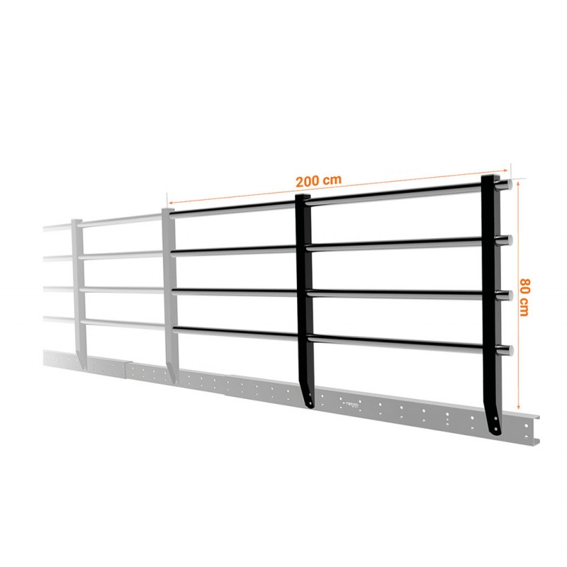 E' una ringhiera modulare, alta 100 cm e lunga 2 metri con 4 tubi, che può essere installata su qualsiasi soppalco appartenente alla Categoria S.