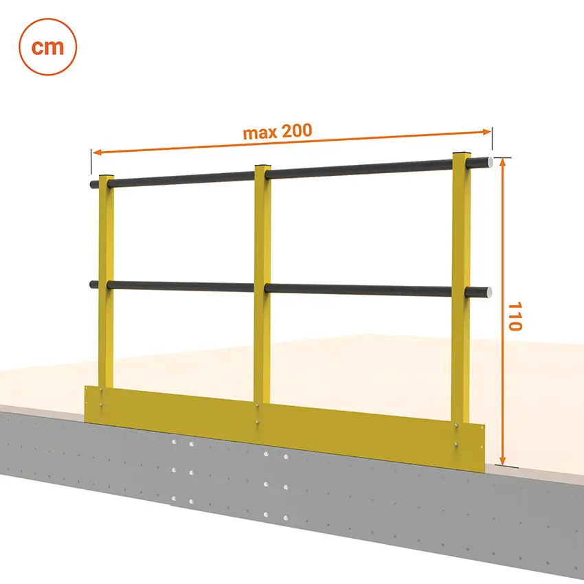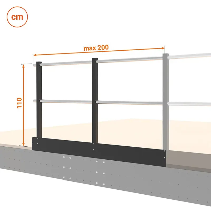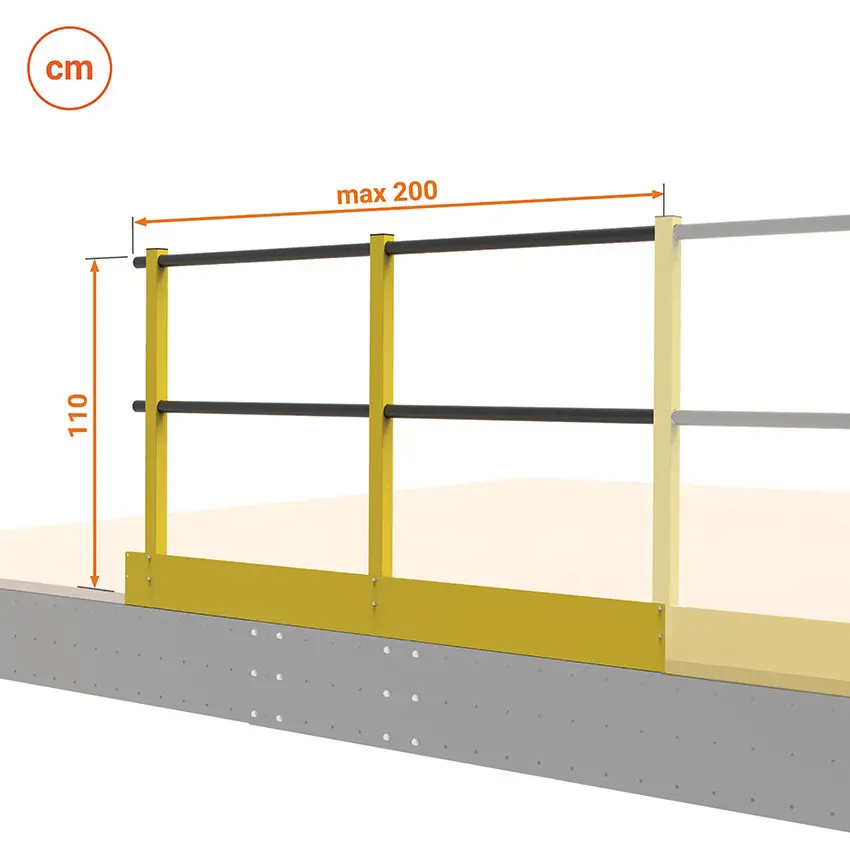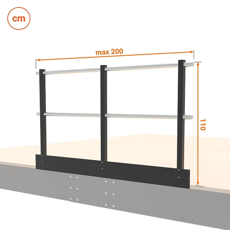 La balaustra di sicurezza UNIVERSALE con piastra fermapiede è l'accessorio ideale per delimitare e proteggere il contorno di qualsiasi superficie.